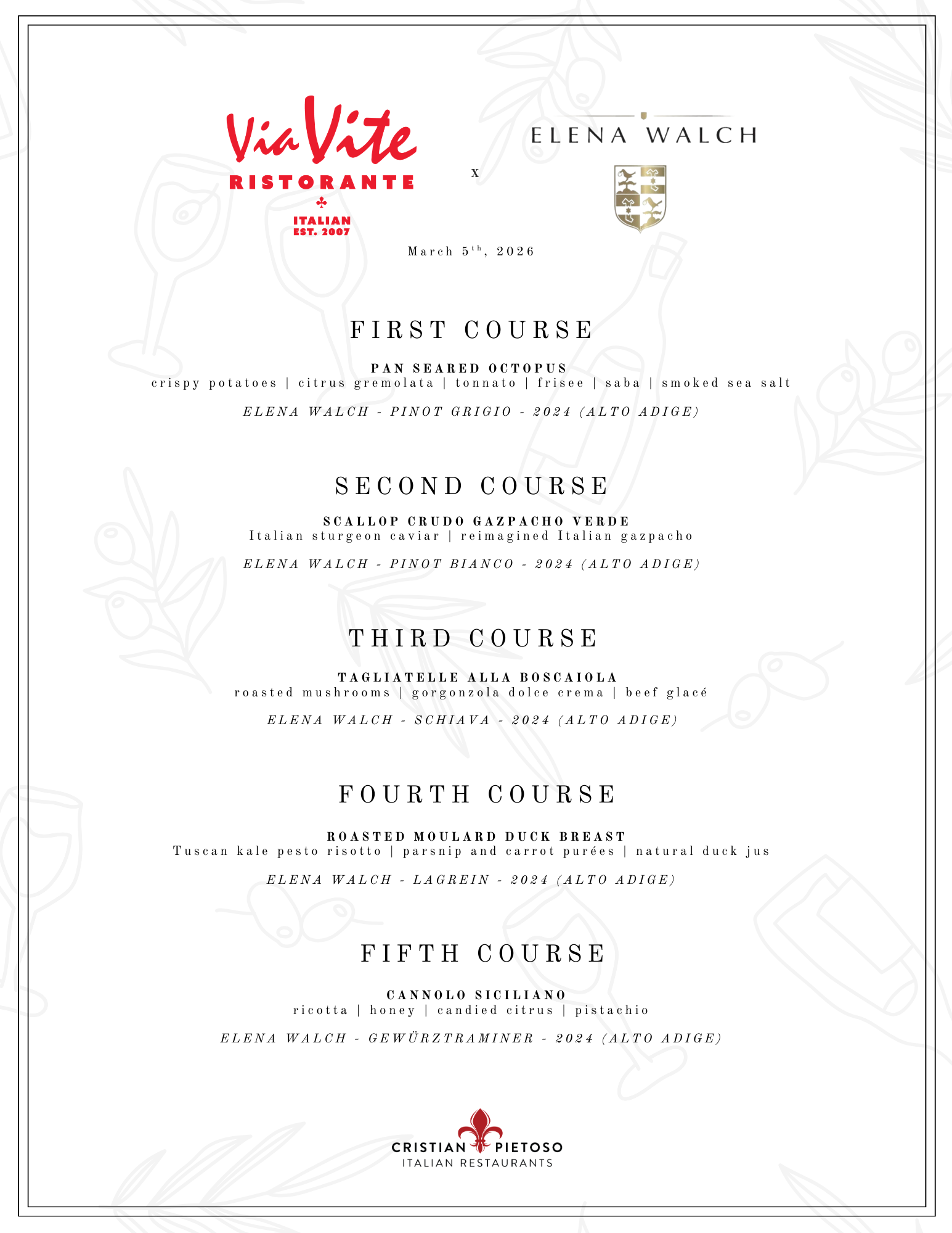 Cincinnati Wine Festival Dinner March 5th, Via Vite is hosting a Wine Dinner for Cincinnati Wine Festival featuring Elena Walch. Get Tickets